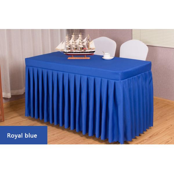 blue Washable 100% Polyester Restaurant Table Skirt Images |